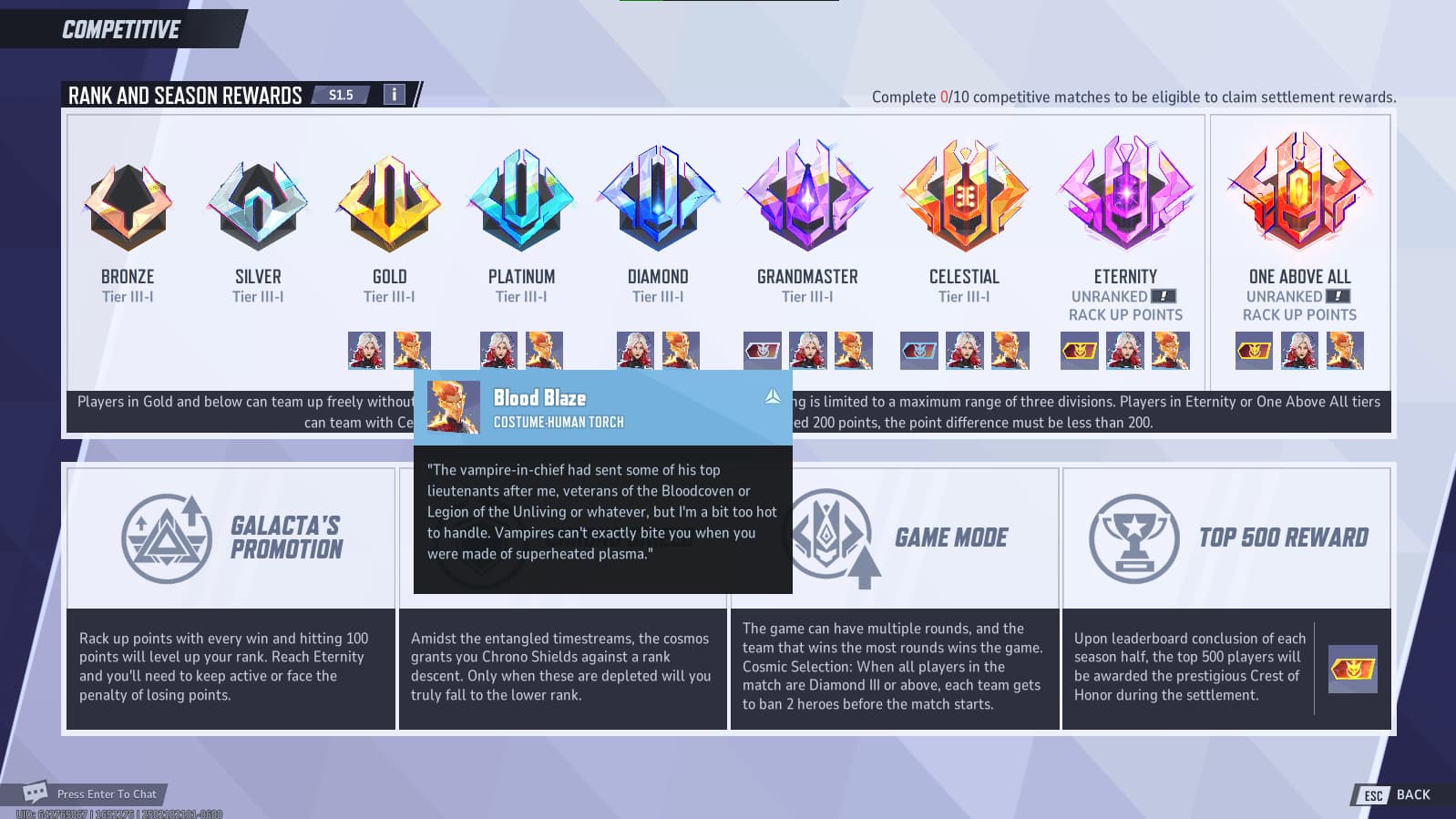 He also joins his sister, Sue Storm the Invisible Woman, in having a ranked reward skin that matches the theme of the season. Blood Blaze is only available during Season 1, so get your rank to Gold so you can obtain it!