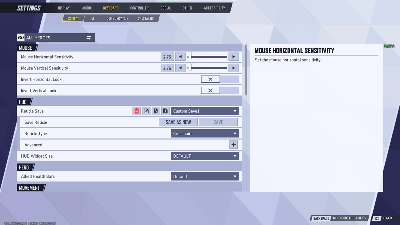 - Locate the HUD section in the Combat menu
