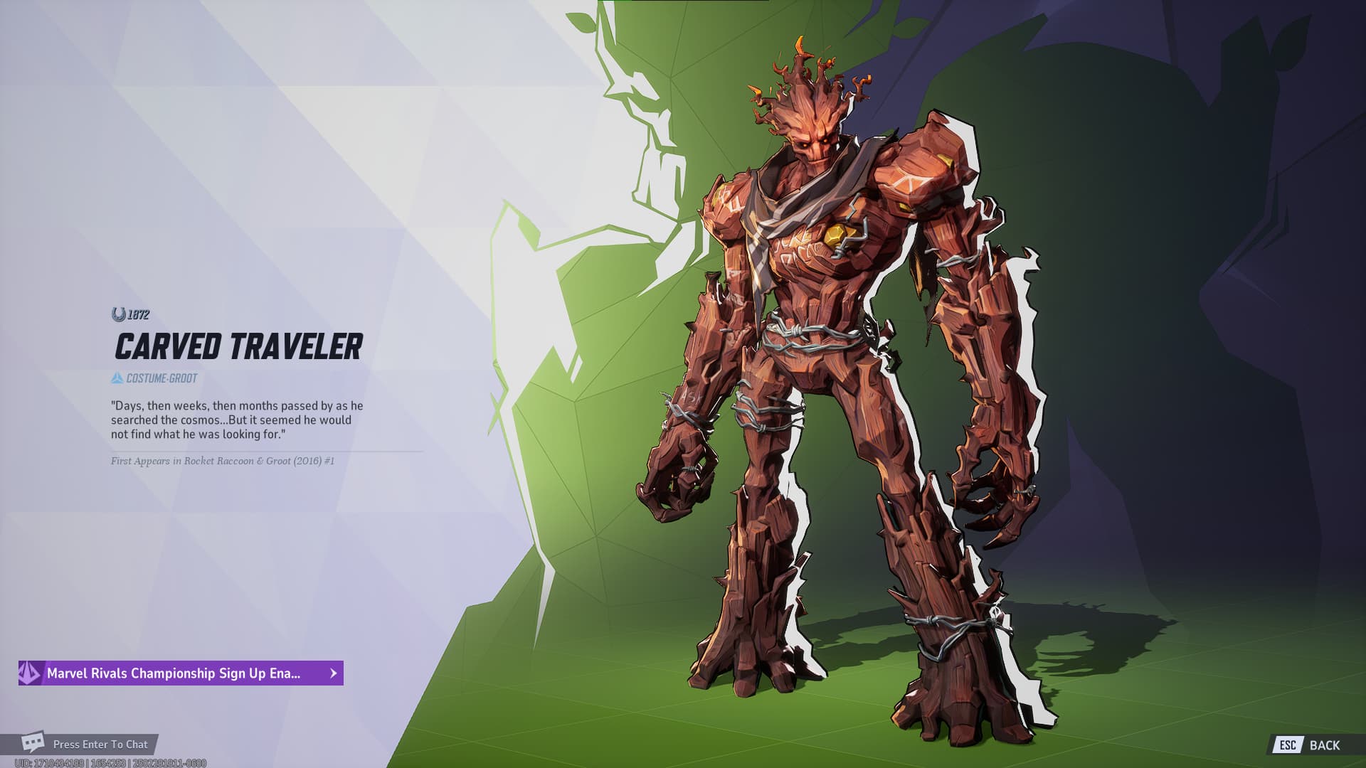 How to get the Carved Traveler skin for Groot in Marvel Rivals for free