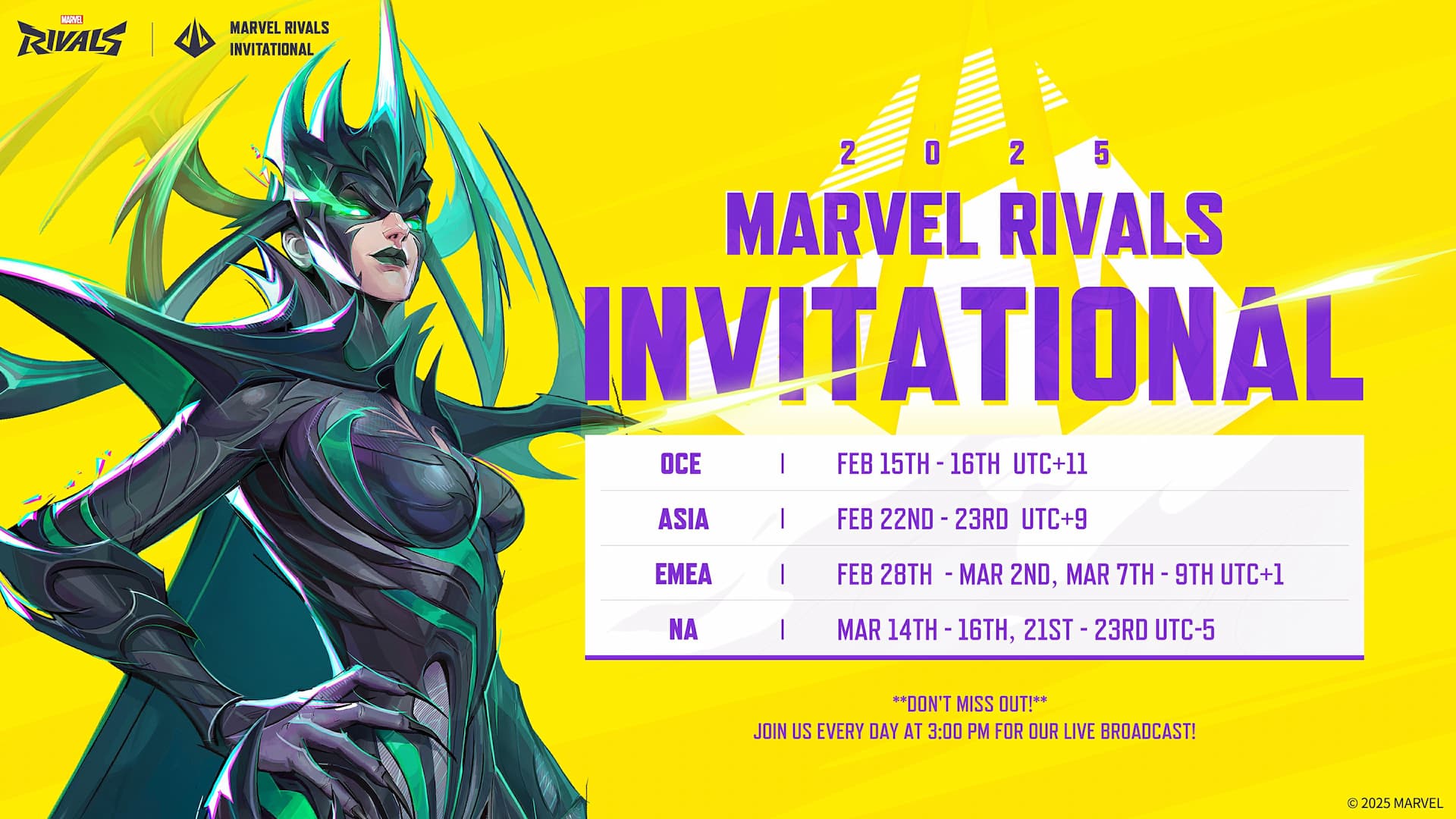 Marvel Rivals Invitational 2025 tournament dates and times