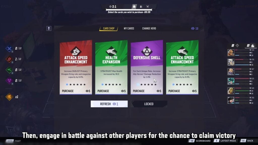 In between rounds, you can pick up cards to enhance your heroes and have the strongest board out of the eight in your lobby.
