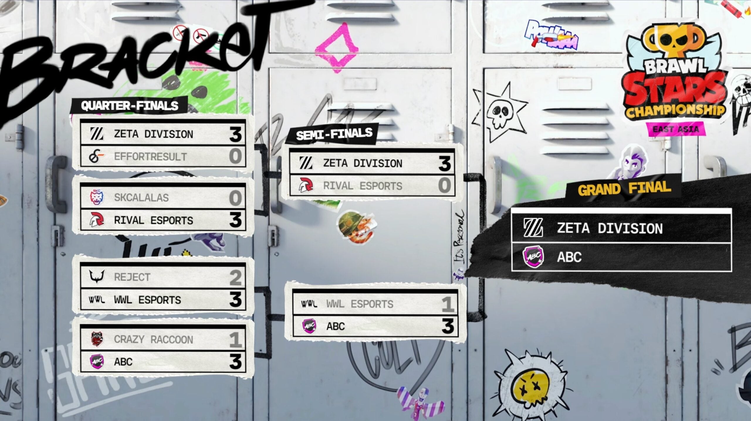 | ZETA DIVISION 3:0 Effort Result 2:0 Gem Grab 2:1 Brawl Ball 2:0 Knockout | ZETA DIVISION 3:0 Rival Esports 2:0 Bounty 2:1 Gem Grab 2:0 Brawl Ball | ZETA DIVISION 3:1 ABC 2:0 Hot Zone 1:2 Bounty 2:0 Gem Grab 2:0 Brawl Ball |