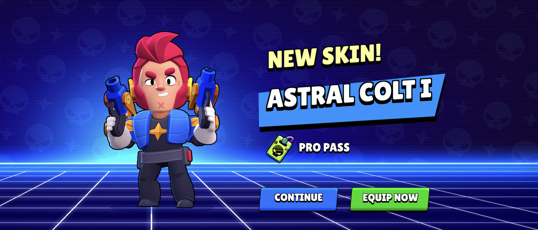 The in-game visuals was revealed during the Dark Sands Brawl Talk. As the first Pro Pass season is already active in Brawl Stars, we can see the actual Astral Colt skin and upgrade levels for it.
