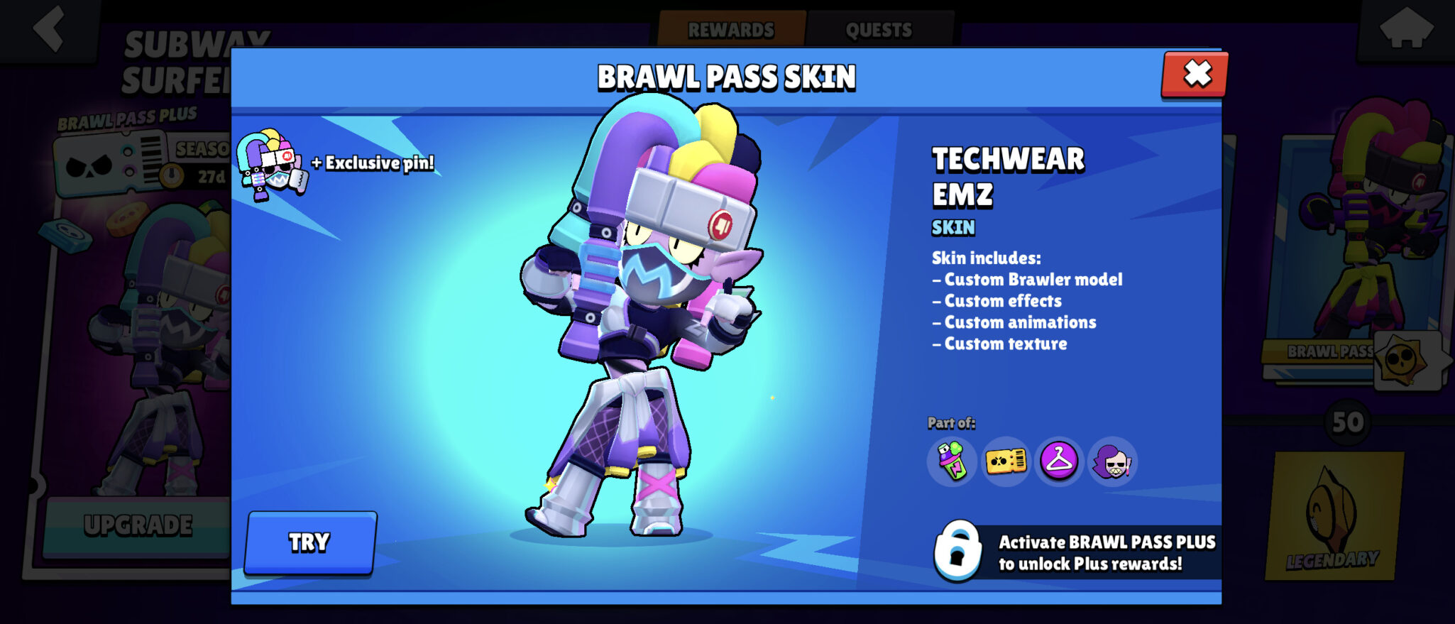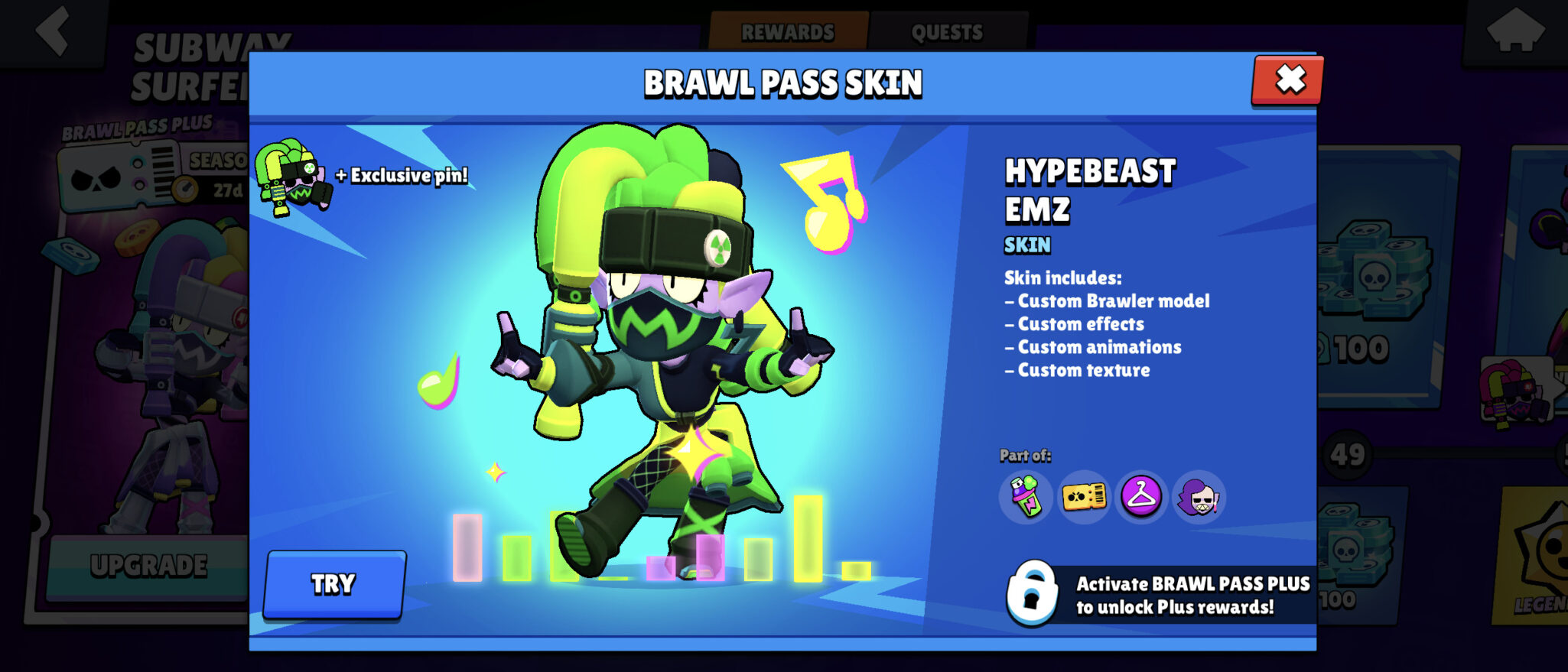 - Hyperbeast Emz and Techwear Emz are Choma skins available with Brawl Pass Plus.