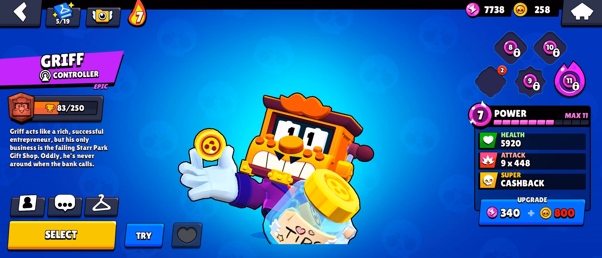 - Griff has long-range attacks: he shoots nine projectiles. His Super covers an even wider space, and it hits opponents on return. Playing Griff requires keeping a safe distance, but you don’t need to be too precise with this brawler, while the mass of projectiles is still pretty damaging and difficult to avoid.