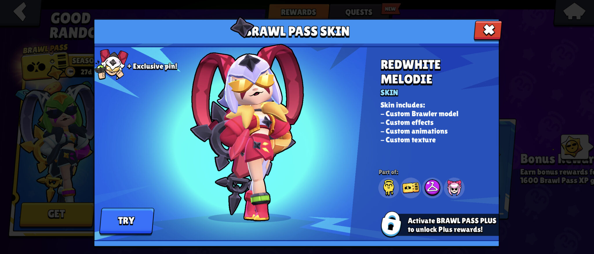 This skin is the final reward in the Good Randoms Brawl Pass. To unlock Melodie, you need to purchase Premium or Premium Plus.