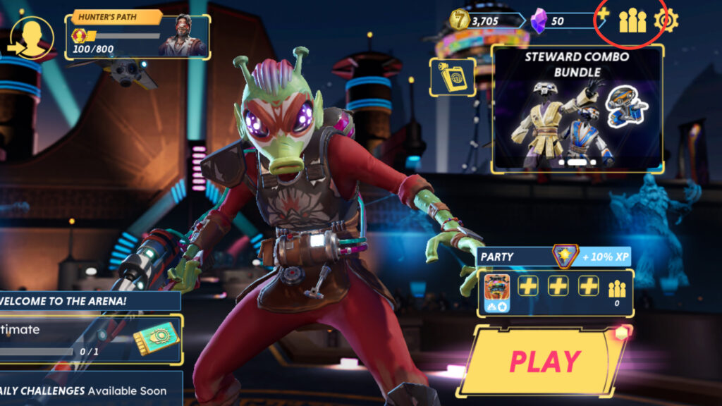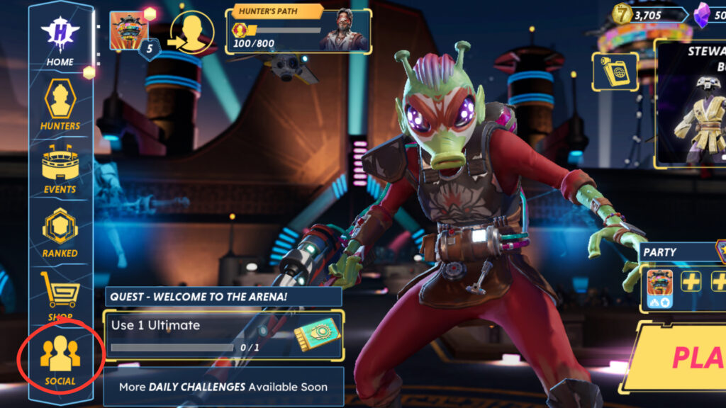 There’s another way to invite friends to a party in Star Wars: Hunters. On the Main Menu, click the “PARTY” icon on the top-right of your screen. You’ll then be able to see your full party lineup and add more friends to the party.
