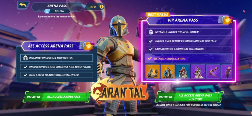 Aran Tal will beyond doubt be a hot pick in the newly-released Star Wars: Hunters. Note that if you purchase the hunter, it will permanently remain in your hunters lineup even after the season ends - which is in 57 more days!