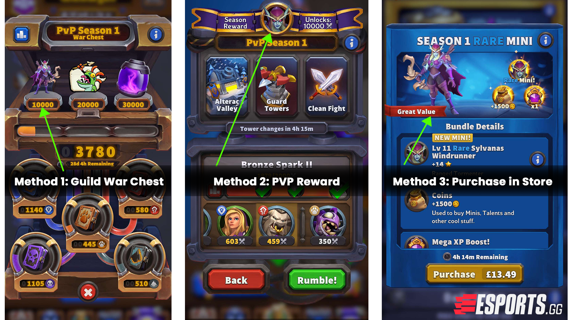 Sylvanas Windrunner can be unlocked in Warcraft Rumble by reaching 10,000 Points in PvP mode or through a combined player effort via the Guild Warchest. Alternatively Sylvanas Windrunner can be purchases in Store for $14.99 at the start and end of Season 1. Sylvanas will not be purchasable using gold in-game until Season 2.