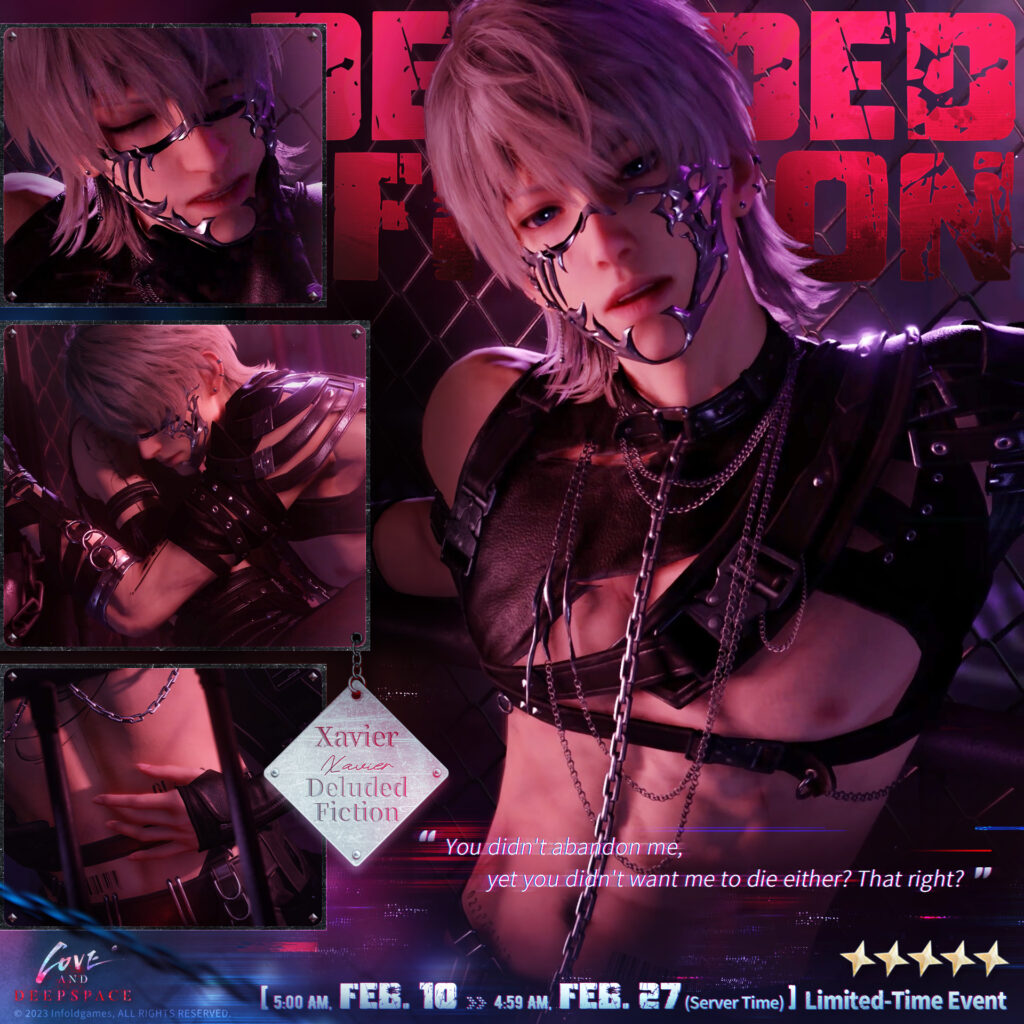 Love and Deepspace gave us a preview of the Memory Series “Tomorrow’s Catch-22” to celebrate Valentines 2025. Check out the five Memories in this series: [Xavier: Deluded Fiction], [Zayne: Immediate Disorder], [Rafayel: Extreme Dose], [Sylus: Innocent Birdcage], and [Caleb: Tainted Cuts].