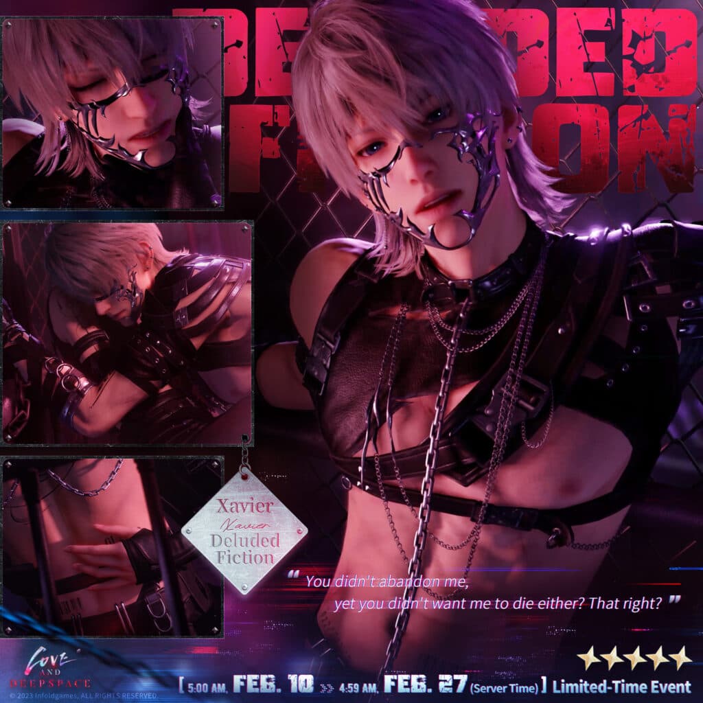 Love and Deepspace gave us a preview of the Memory Series "Tomorrow's Catch-22" to celebrate Valentines 2025. Check out the five Memories in this series: [Xavier: Deluded Fiction], [Zayne: Immediate Disorder], [Rafayel: Extreme Dose], [Sylus: Innocent Birdcage], and [Caleb: Tainted Cuts].