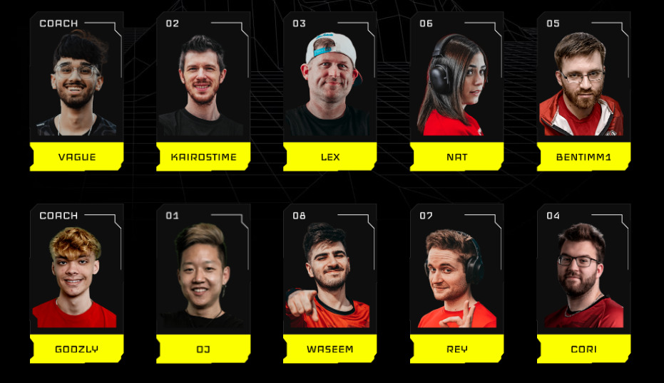 Each team consists of eight creators from across the mobile gaming space and two professional CoD Mobile players. The CoD Mobile players will be the coach of each team. The squads are as follows: