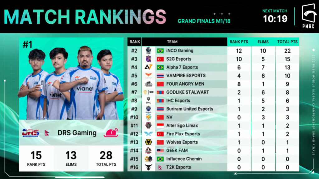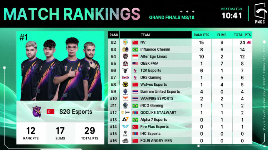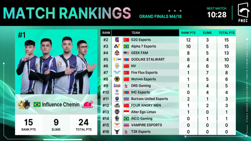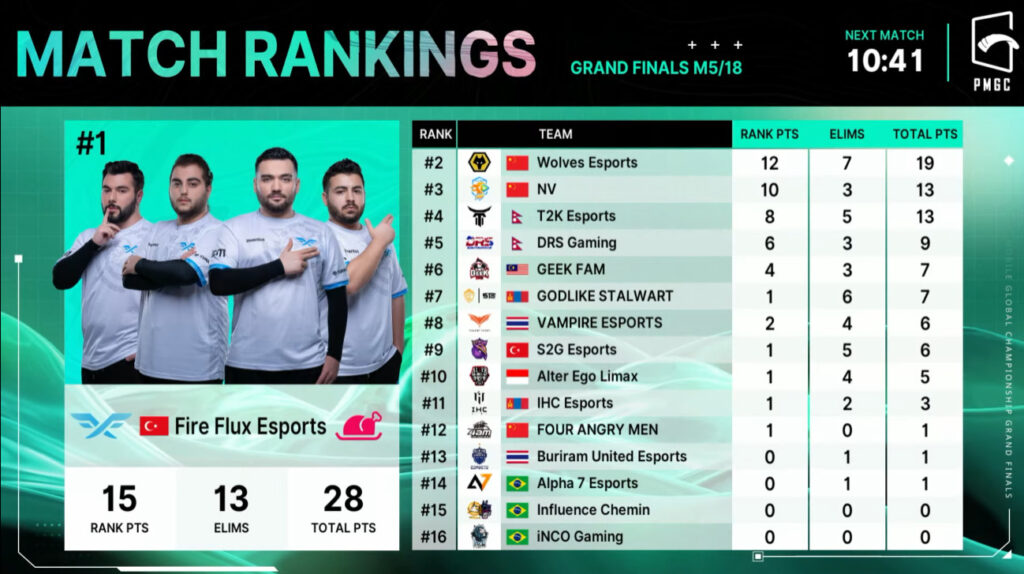 PMGC 2022 Grand Finals: Scoreboard per match