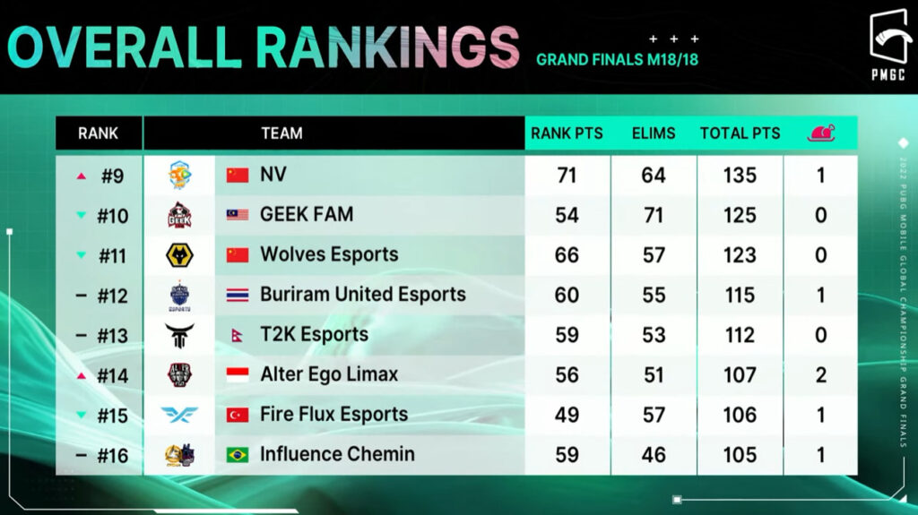 PMGC 2022 Grand Finals: Overall standings