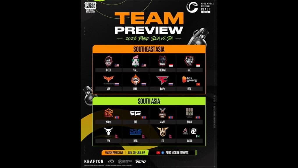 The PMRC is set to feature the best of SEA and South Asia. From SEA, the top eight teams from the PUBG Mobile Super League (PMSL) Spring 2023 have qualified. These are as follows: