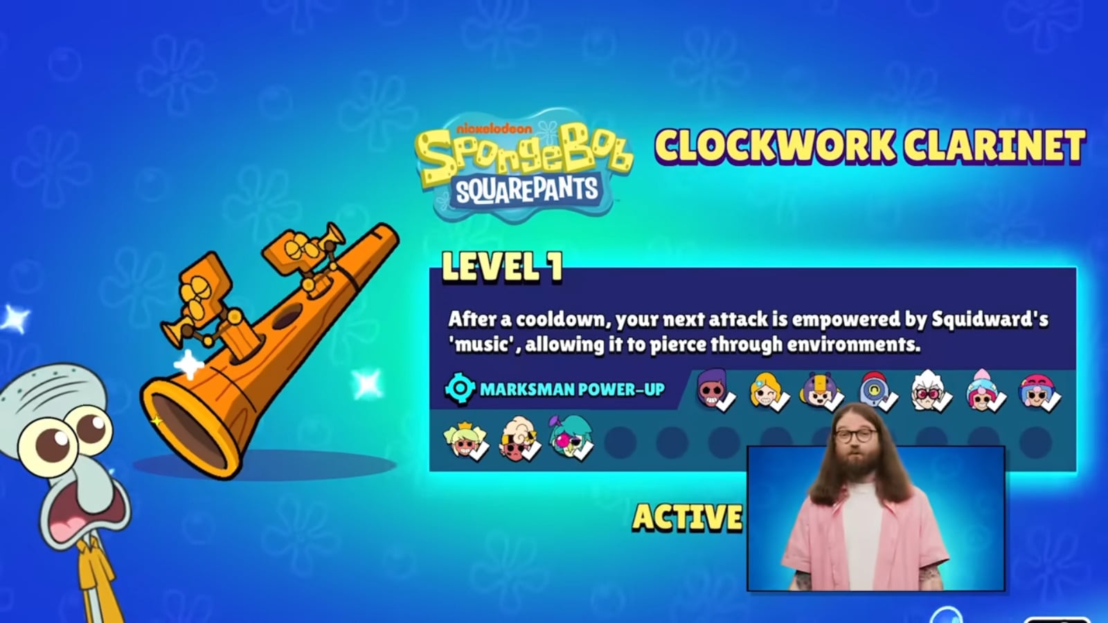 | 1 | Chum Balls: Give you projectiles after hitting an opponent | Clockwork Clarinet: Squidward’s music empowers your shots so they go through objects |