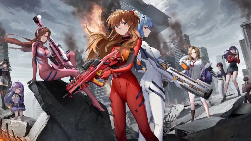 The NIKKE x Evangelion collaboration will feature the four main Evangelion protagonists; Asuka Langley, Rei Ayanami, Mari Makinami and MIsato Katsuragi.
