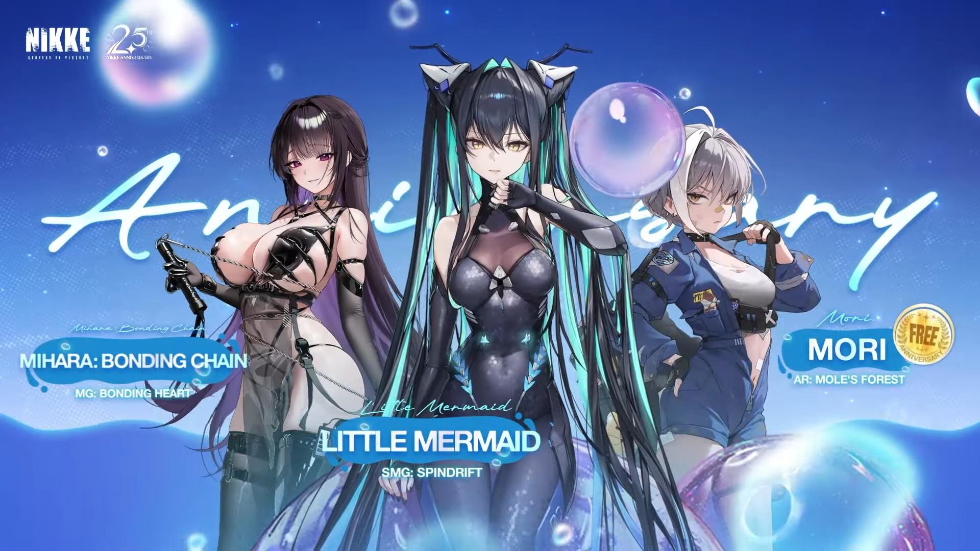 To celebrate NIKKE's 2.5th Anniversary, we're getting three new units Mihara: Bonding Chain, Little Mermaid, and Mori, and a lot of costumes!