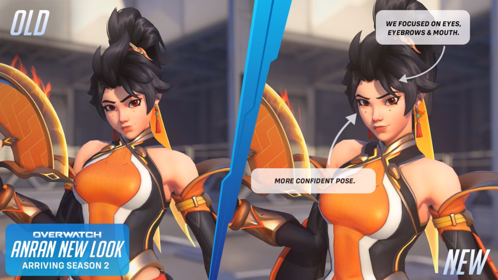 Anran's face update will arrive in Overwatch Season 2. Here's the before and after.