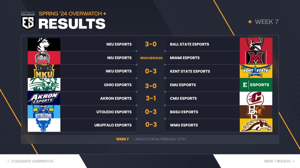 The ESC broadcast continues this week with the Ohio University facing off against Bowling Green on the official ESC Twitch account. For the games that will not be on the broadcast, check out the individual streams from each school’s broadcast channels linked below their previewed match.