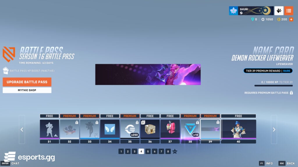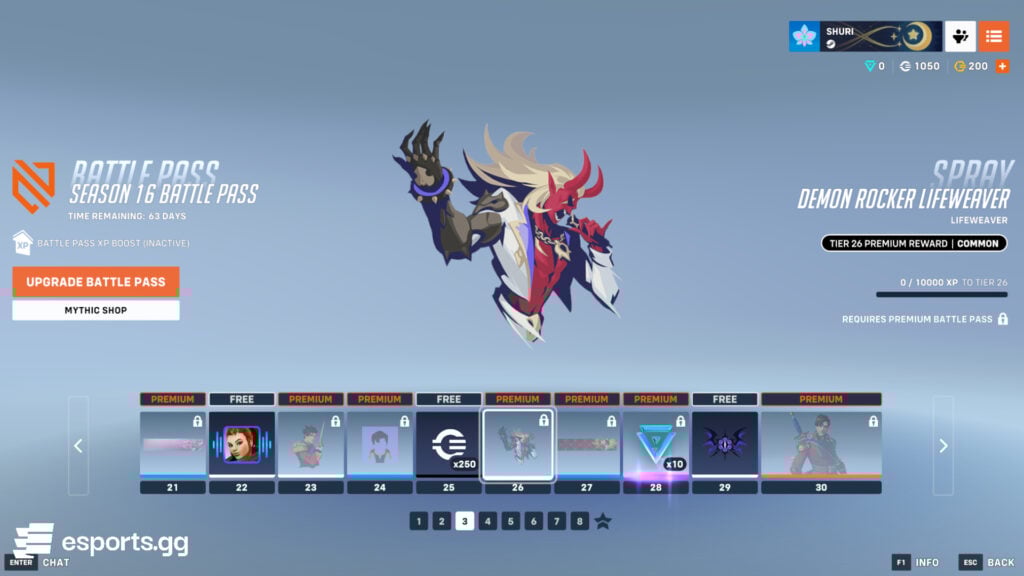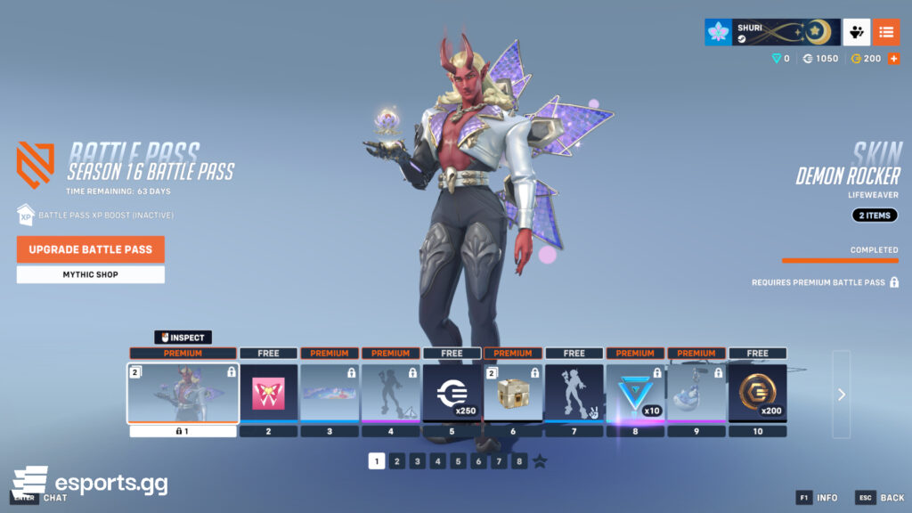 In the first 10 tiers, you can get two free rewards: 250 credits and 200 Overwatch Coins. Upon buying the paid version, you get the Lifeweaver Demon Rocker skin and its icon immediately.
