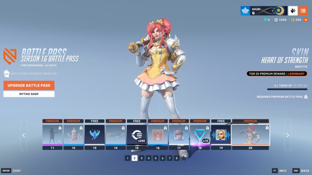 Secondly, you can earn another 250 credits for free, as well as a Tracer Doki Wings spray. The paid version brings us a new Brigitte Heart of Strength legendary skin.