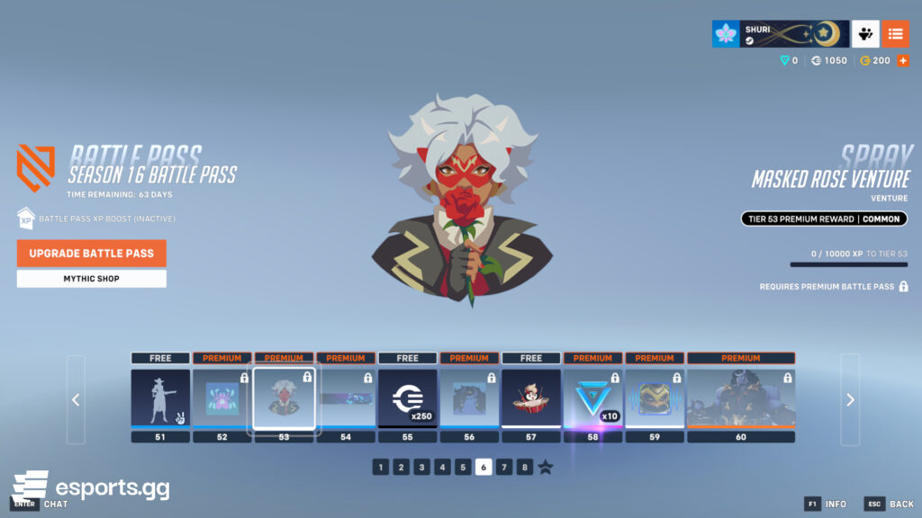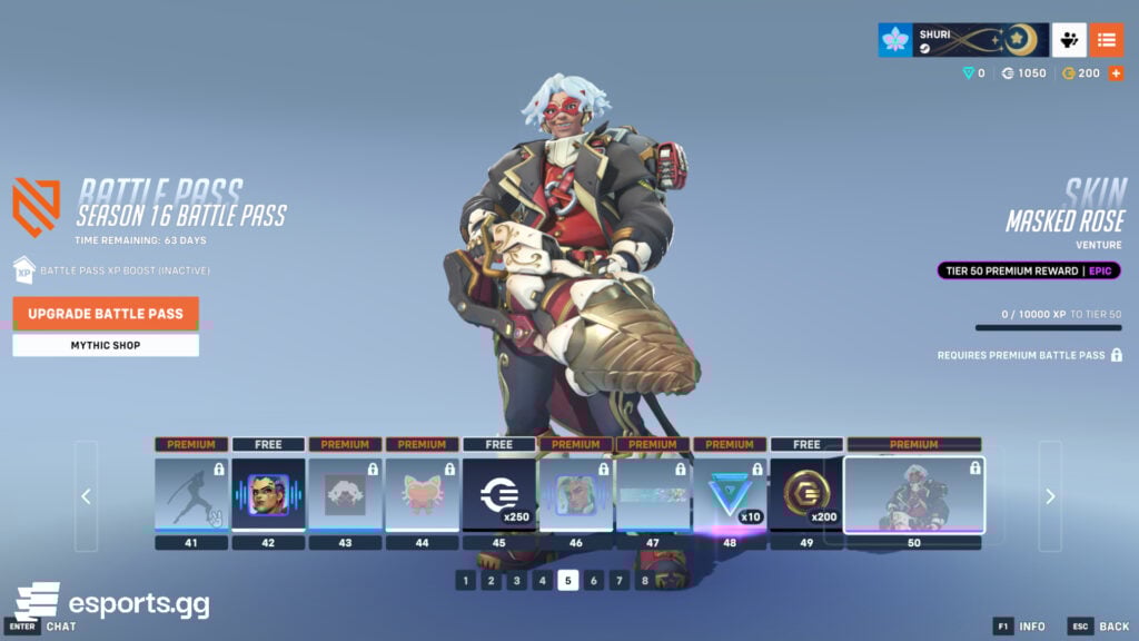 There’s less for the free players here, getting only 250 credits and 200 Overwatch Coins. However, for the Venture mains who have been demanding a customization for a while, here is your chance to get the Masked Rose Venture epic skin!