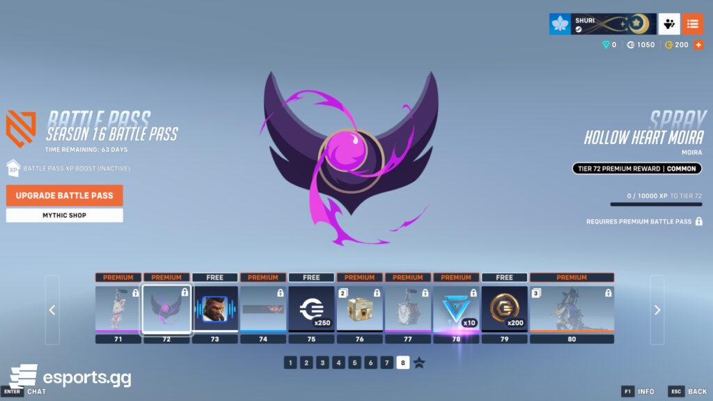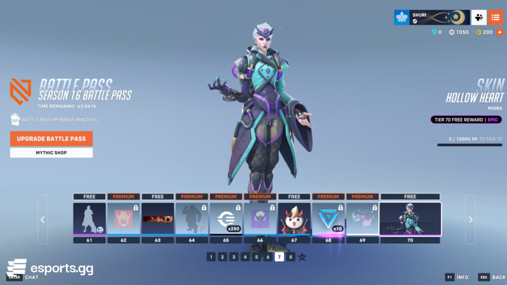In total, the Overwatch 2 Season 16 Battle Pass can grants you a legendary loot box, 600 Overwatch Coins, 1,500 Credits, plus the Dokiwatch Hollow Heart Moira and Hero of Heart Tracer skins for free.