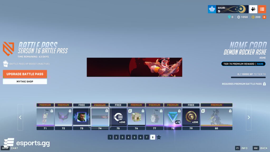 Later in the pass, you can earn a free Rock On Ashe victory pose, 250 credits, and a Demon Drummer spray. In tier 60, for those who paid, there’s the Demon Rocker Mauga legendary skin up for grabs.