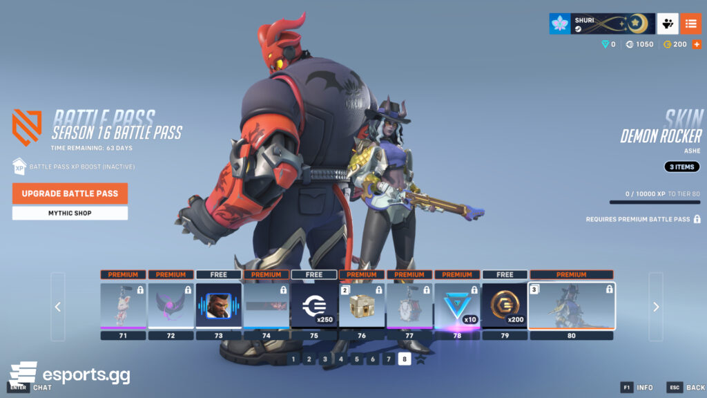 Last but not least, you can earn three free rewards: a L.O.V.E. Baptiste voice line, 250 credits, and 200 Overwatch Coins. For those with the paid Battle Pass, reaching the end unlocks the Demon Rocker Ashe legendary skin, spray, and icon.