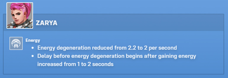 Zarya was dominant in the first months of Overwatch 2. Her ability to juggle bubble cooldowns while keeping energy at high levels made her more lethal than most DPS Heroes. While her ability to steamroll through opponents was lessened in the last patch, it might have also been too much of a de-tuning. This buff allows her to hold onto energy for a bit longer, meaning she’ll be able to keep being aggressive in short fights.