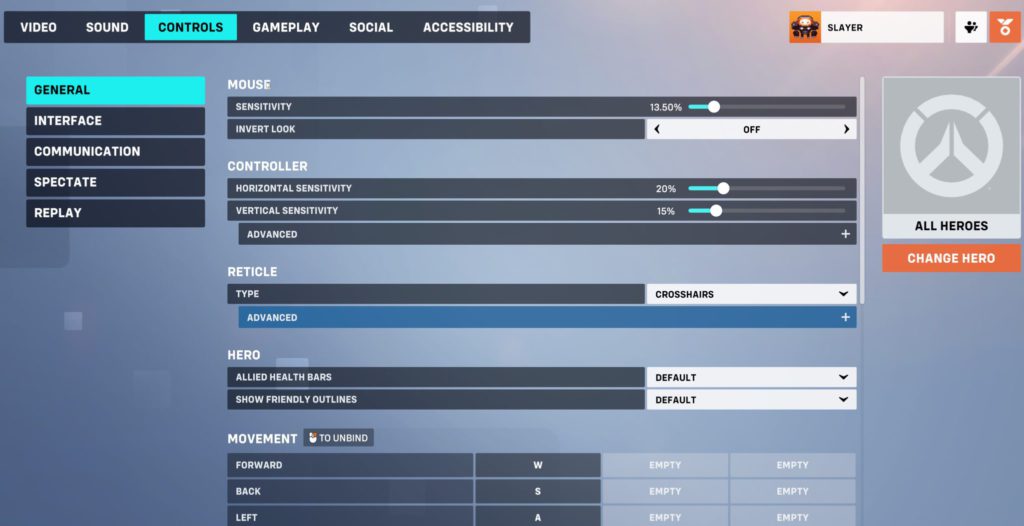 Click on Controls to be able to customize your Overwatch crosshair