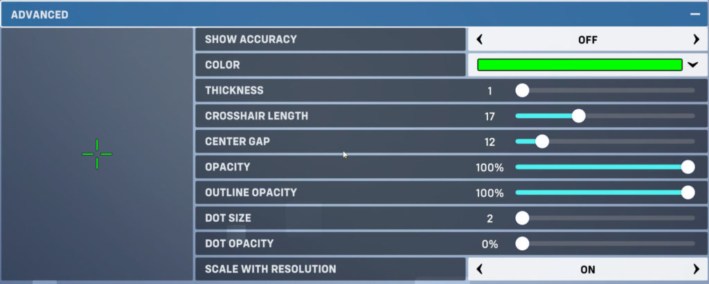 Make sure the Reticle type is crosshair and then click on advanced options.