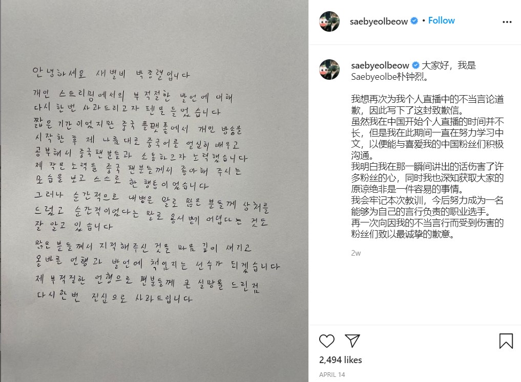 Saebyeolbe Apologizes