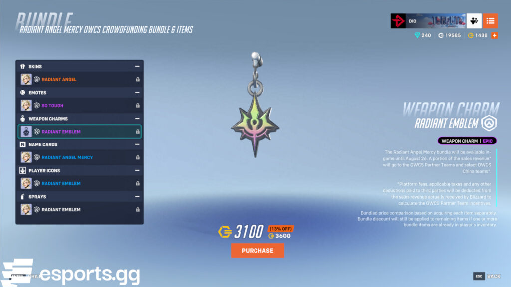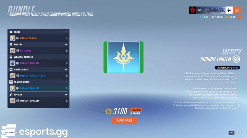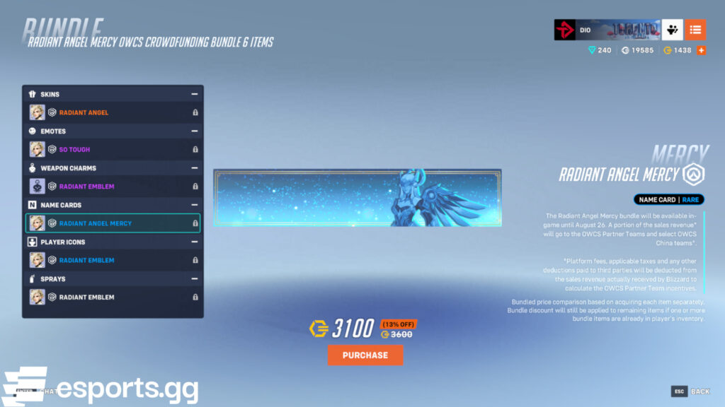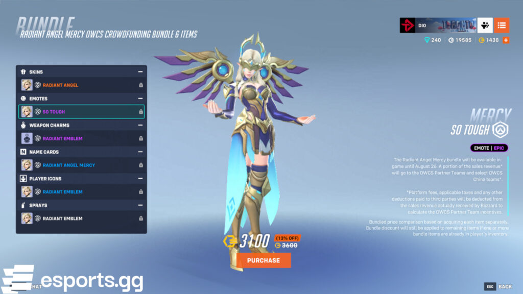 There are a few mega bundles up for grabs as well. These require 7,500 Overwatch Coins each. And much like Mercy’s OWCS offering, all of the team bundles and mega bundles help with crowdfunding.
