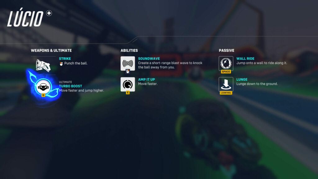 Lucio has his standard kit, but with a couple of alterations. These include the removal of Crossfade and lower cooldowns for Soundwave and Amp It Up. Additionally, Lucio can also lunge to the ground. There is even an ultimate that gives Lucio faster movement speed and higher jumps.