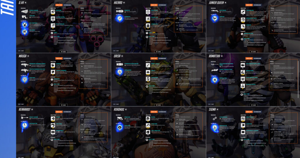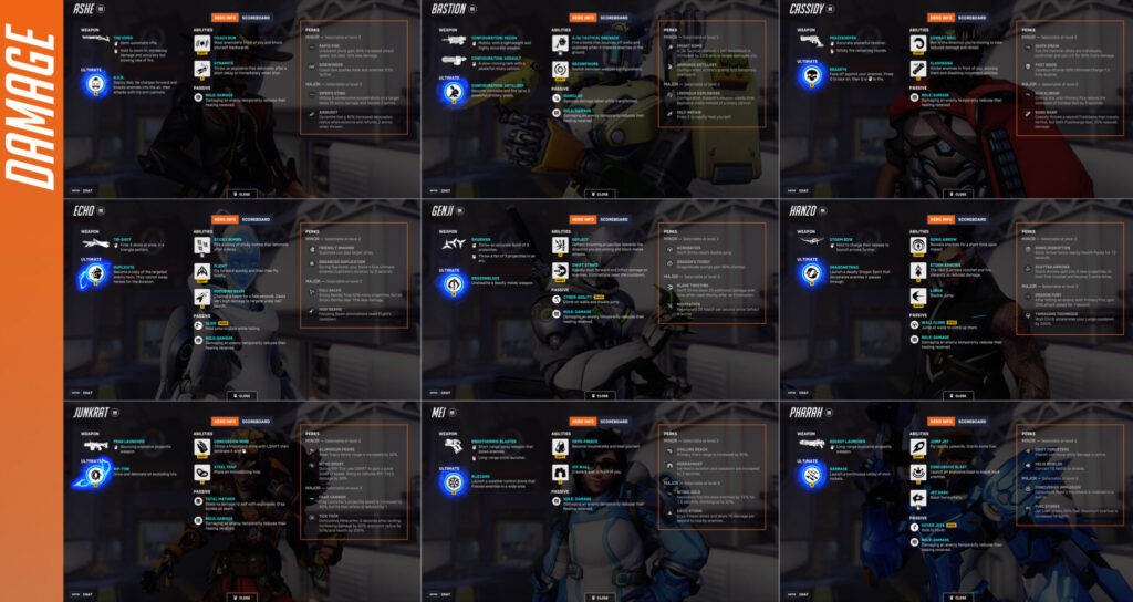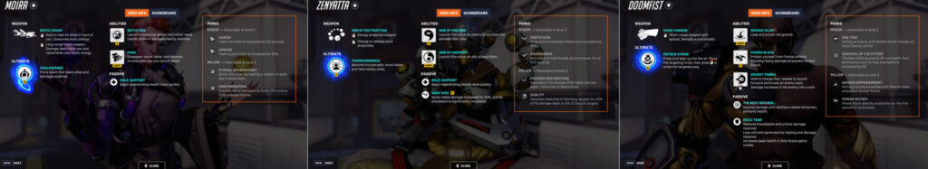 Here are all of the Perks in the game, starting with the damage heroes before the supports and tanks.