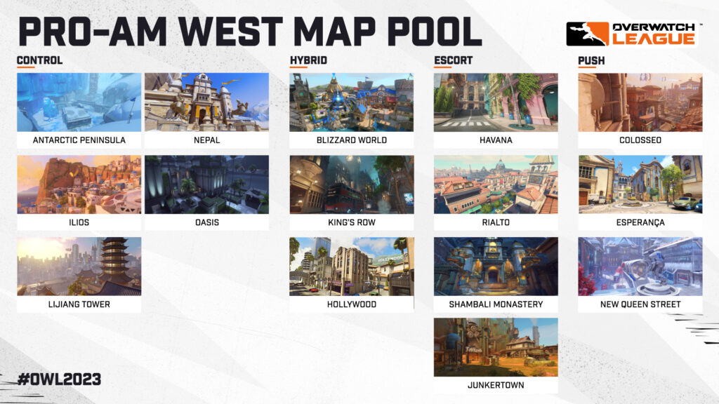 The map pool for the Overwatch League Pro-Am West event was also revealed. It includes: