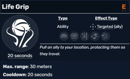 Life Grip is best used when pulling a friendly up to the safety of high ground or your Petal Platform. However, it has equal use in keeping your overextended tank from killing himself in the name of getting that elim. More proactive uses also include pulling a Junker Queen back who has just used her Rampage Ultimate.