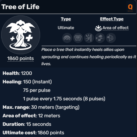 Tree of Life provides amazing healing output if timed correctly. The key is using it in the heat of battle, as to force your opponent’s hand on whether to kill the tree or to fight the objective at-hand. Also important to remember that the tree is a literal piece of terrain, and as such can be used to block line of sight.