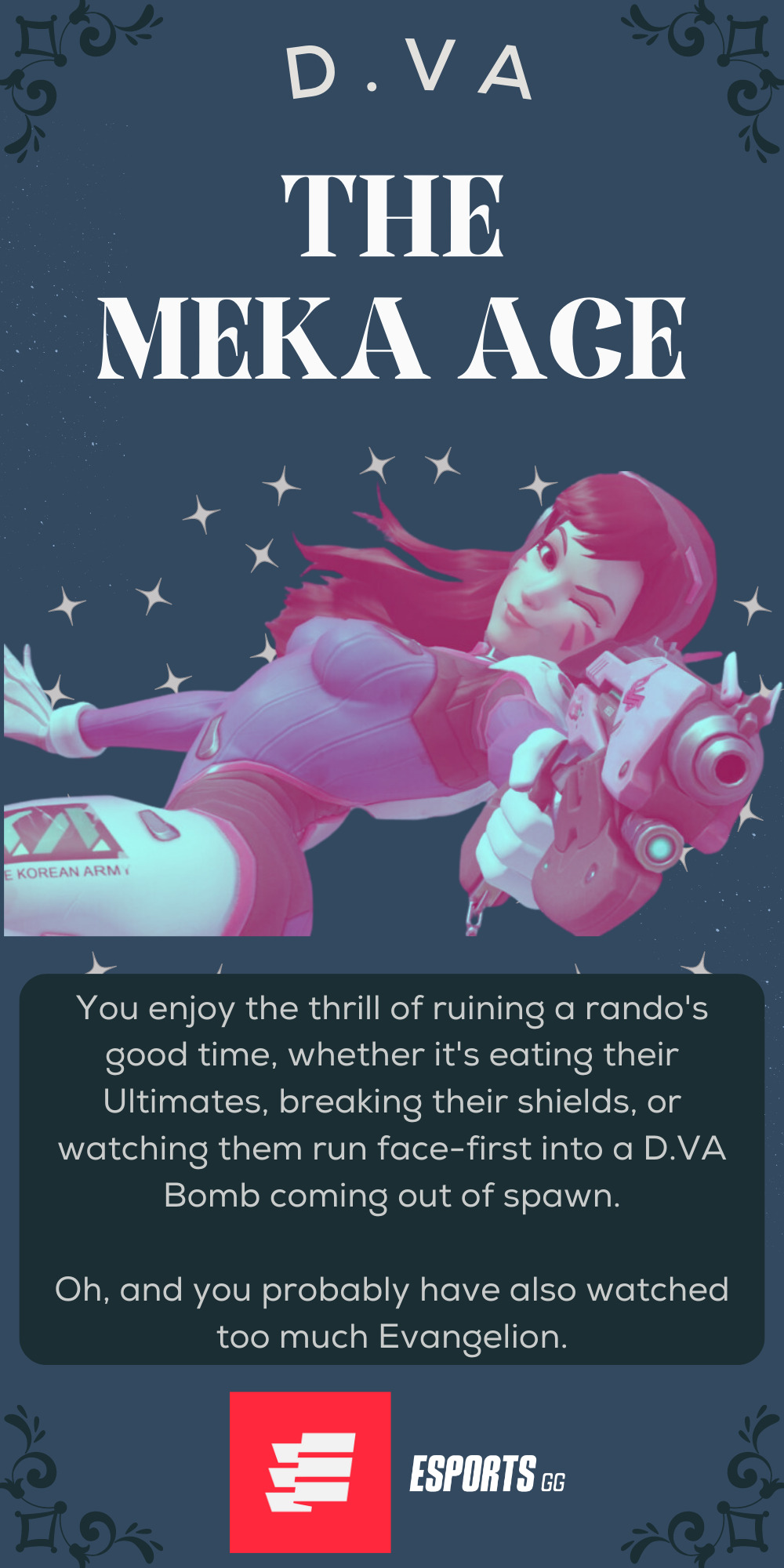 As a former D.VA main, I can say with some authority that part of the fun of playing the Meka Ace is playing spoiler. She’s fantastic at ruining plans, diving that faraway sniper, or being a wall that stands tall. However, like all good front liners she’s only as good as her supports. Here’s hoping that there’s an Ana or Mercy in your life ready to follow you into battle, wherever you may go.