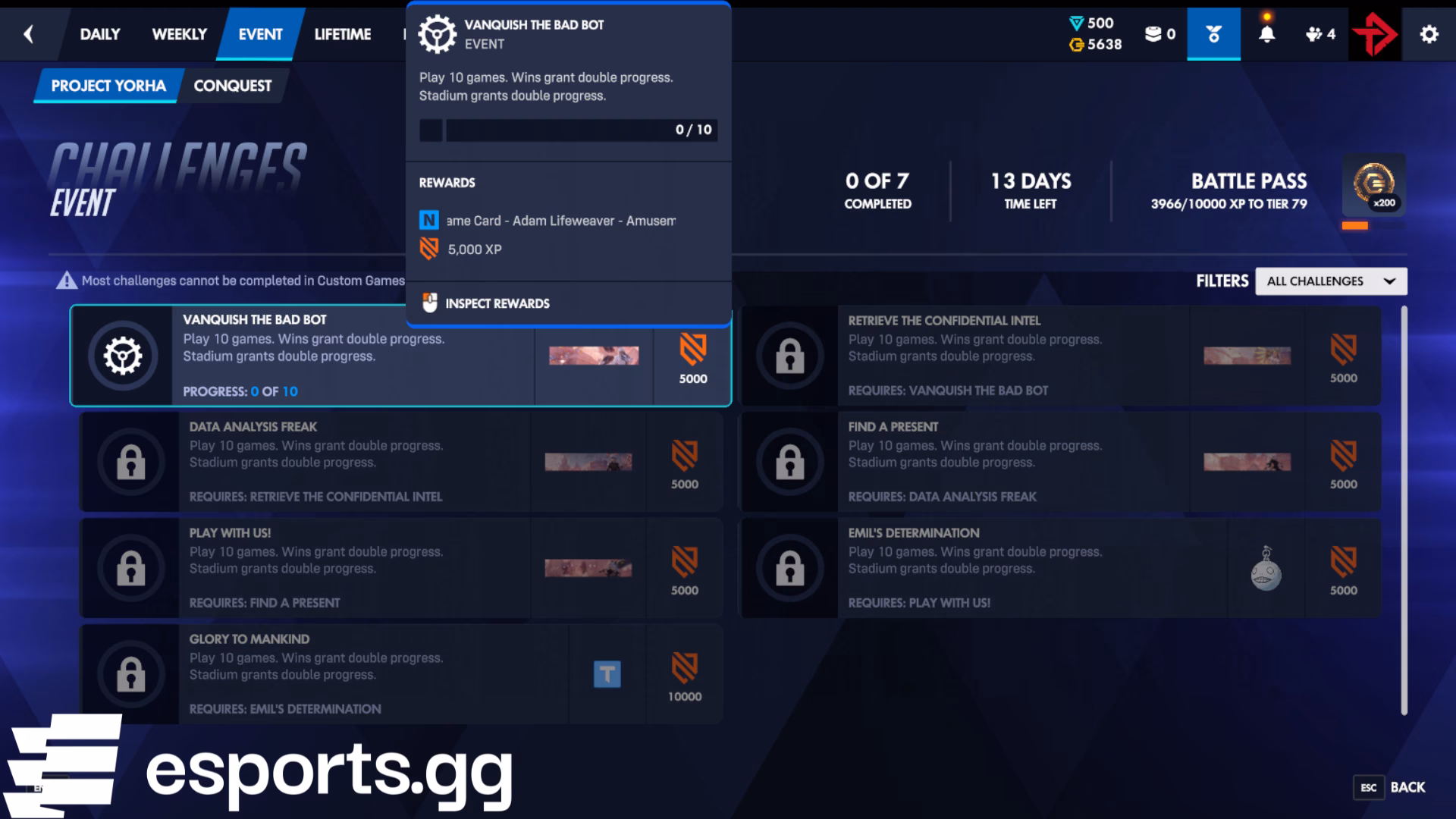 Here are all of the Overwatch NieR Automata event challenges and rewards. Although each challenge has a different name, the requirement to complete them is the same. Players simply need to finish 10 matches. Do this challenge seven times to receive all of the Project YoRHa rewards. Note that match victories grant double progress, too. This means those who play and win in the Stadium game mode can earn progress even faster.