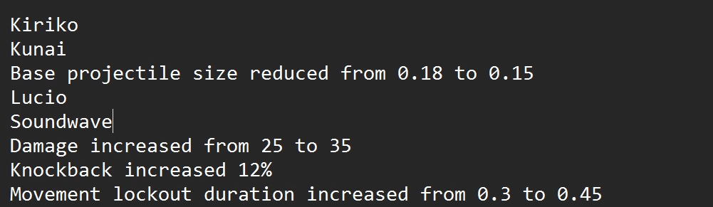 - Kiriko health increased from 200 to 250