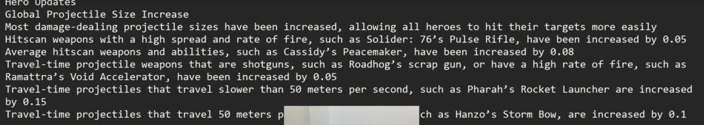 - Travel-time projectile weapons that are shotguns, such as Roadhog’s scrap gun, or have a high rate of fire, such as Ramattra’s Void Accelerator, have been increased by 0.05