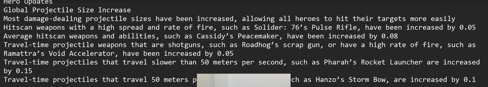 - Travel-time projectiles that travel 50 meters per second or faster, such as Hanzo’s Storm Bow, are increased by 0.1