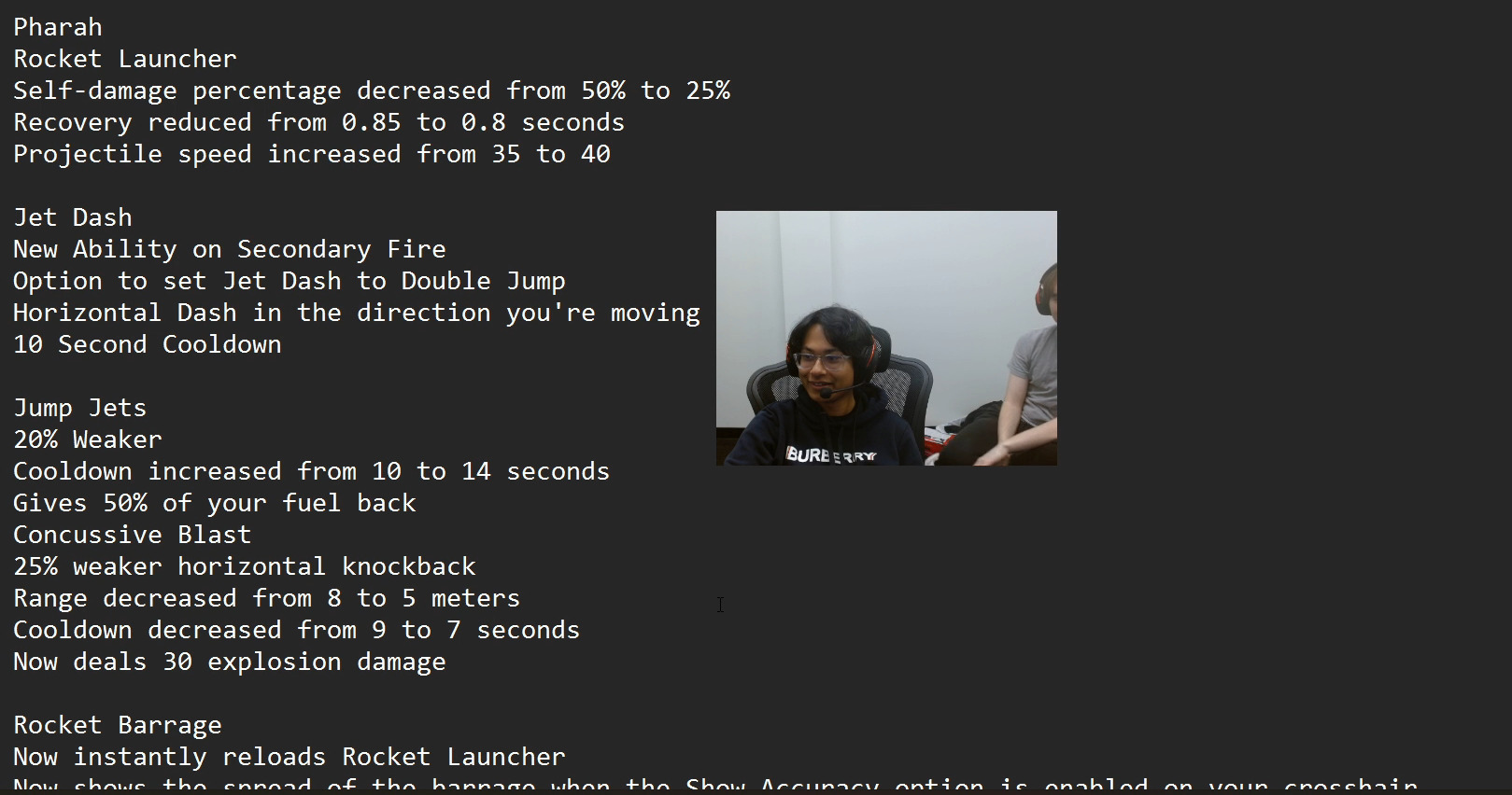 - Pharah health increased from 200 to 250