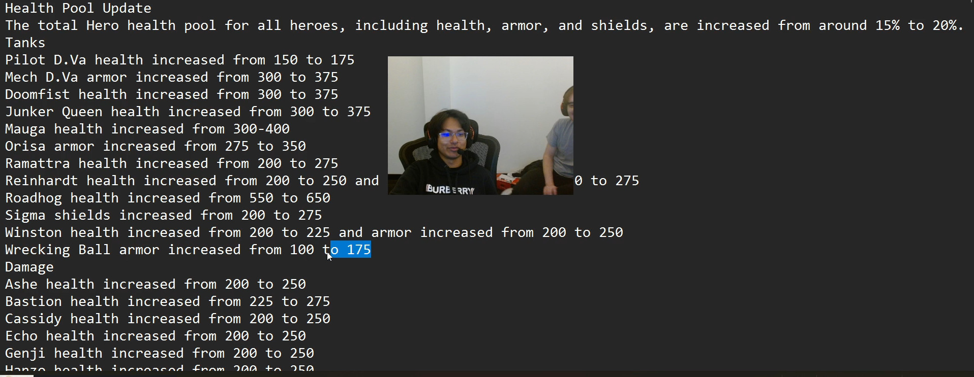 - Wrecking Ball armor increased from 100 to 175