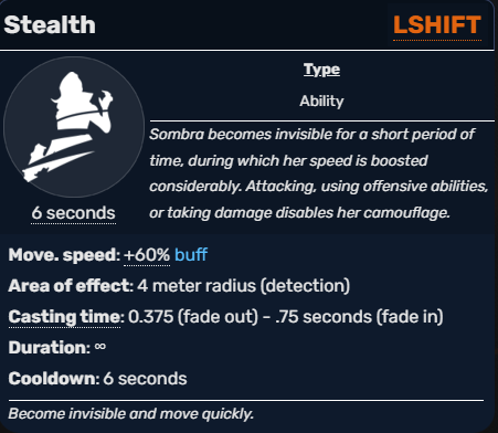 Let’s get the basics of Sombra and her kit out of the way for the sake of completion.