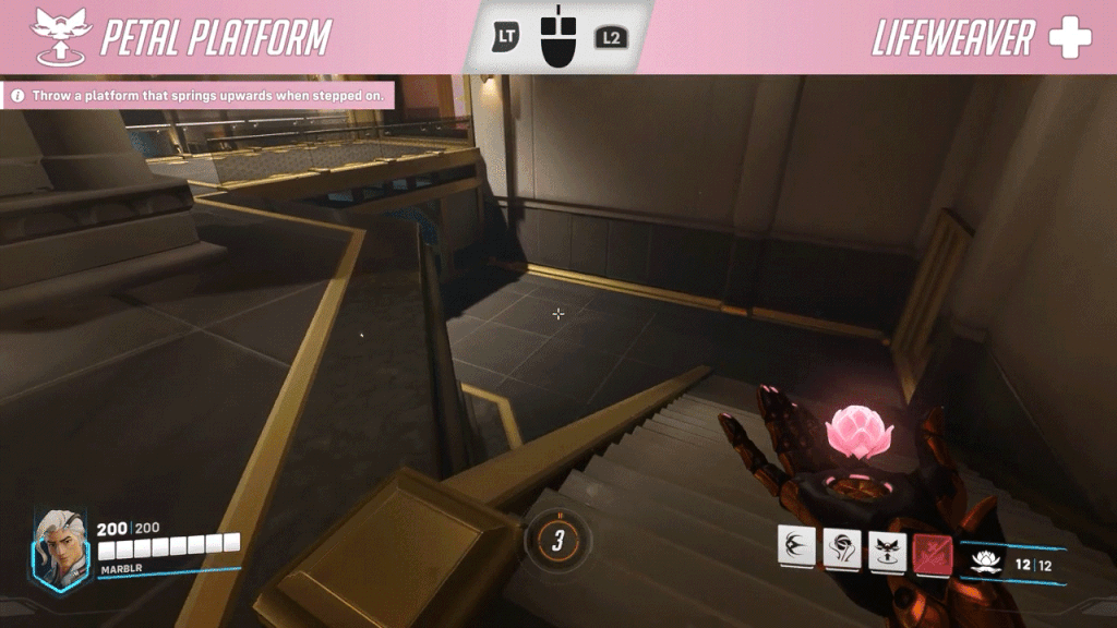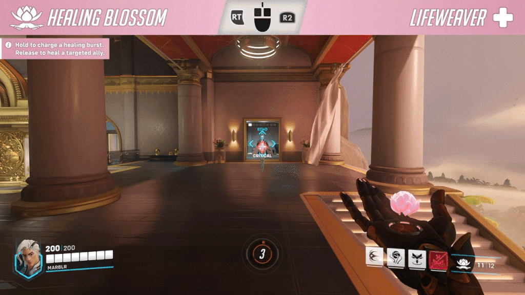 Every Support Hero has a baseline, spammable heal and Lifeweaver is no different. However, one way the Lifeweaver abilities kit is different than most other Supports is that his left-click requires a charge. A full charge from his Healing Blossom ability appears to heal for about 40 percent of a 200 HP Hero’s health. This charge can be held for about 2.5 seconds before it releases. However, you can also spam-click the button for small heals or release the charge early.