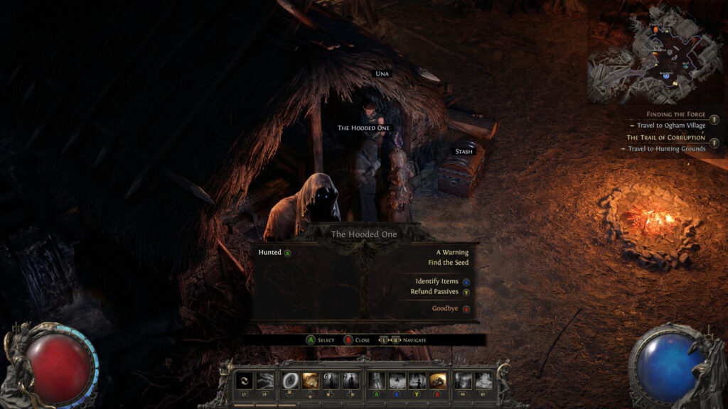 To respec Passive Abilities, you have to unlock The Hidden One, who is an NPC that you bring back to life in the Clearfell Encampment. Una helps with this process during the quest “The Mysterious Shade.” In this quest, you have to destroy runes on a tree to rescue a hanging person, who’s clinging on to life. As you might assume, the hanging person is The Hooded One.